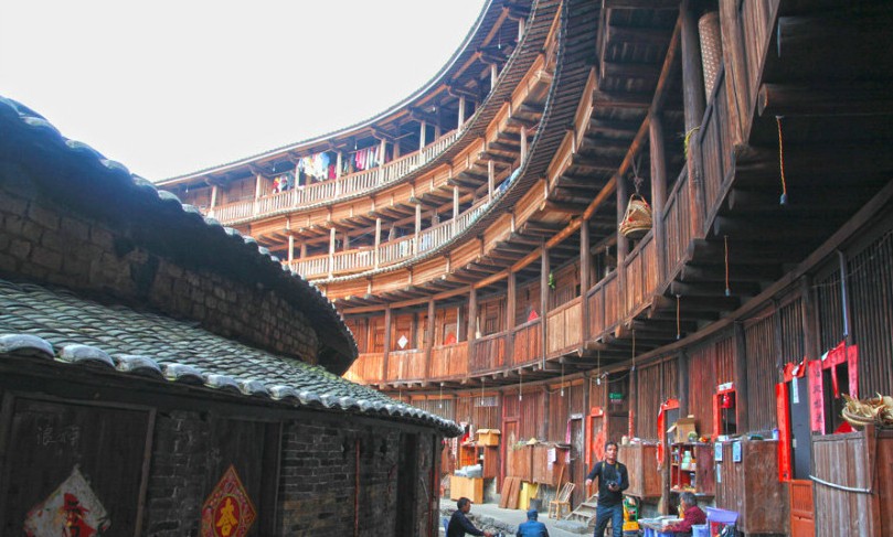 乘車約3.5小時赴龍巖,【永定高北土樓群一日游】(游覽約2-2.5小時)高貴典雅的土樓之王--承啟樓、建于清代嘉慶年間--世澤樓、“不倒樓”沒有石砌墻基--五云樓、博士樓--僑福樓,乘車返回廈門