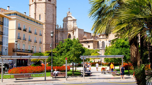 在游輪前臺(tái)集合,之后跟隨領(lǐng)隊(duì)下船,乘坐專車前往瓦倫西亞老城,途中我們將經(jīng)過位于海濱的F1瓦倫西亞城市賽道。瓦倫西亞的老城區(qū)保存了中世紀(jì)風(fēng)貌,其中最具代表性的就是【瓦倫西亞大教堂】,其造型特別的大門,以及高聳的八角形米格萊特鐘樓都是瓦倫西亞的象征,外觀教堂并在教堂旁邊的地標(biāo)圣母廣場(chǎng)上拍照留念。我們還會(huì)留出自由活動(dòng)時(shí)間讓大家在老城區(qū)四處逛逛,拍照留念。之后我們還將乘車來的瓦倫西亞的新城區(qū),在極具現(xiàn)代感的藝術(shù)中心、科技館、天文館和水族館等幾座建筑前拍照留念。