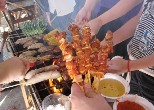18:00用晚餐。自助燒烤BBQ(所有烤串不限量供應(yīng):數(shù)十種肉串,素串,任您挑選;酒水飲品不限量暢飲:啤酒、雪碧,可樂,均為大瓶暢飲裝)