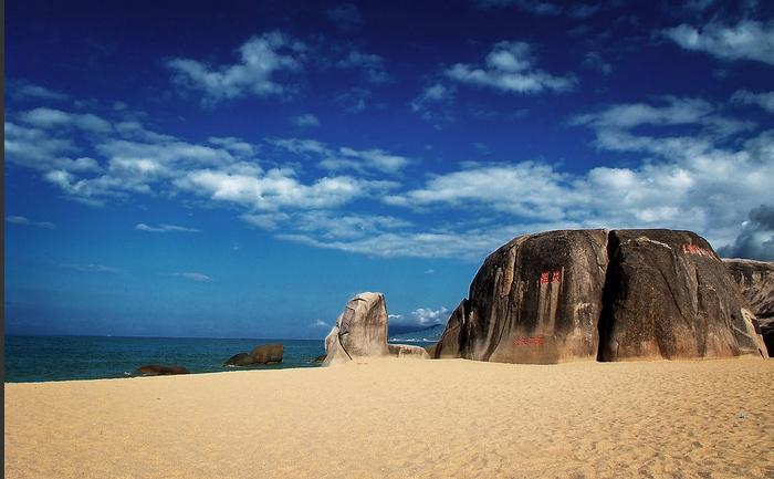 下午:13;30前往(車程約40分鐘)攜手愛侶同走【天涯海角】(游覽時間約120分鐘),沿著砂巖交替海岸漫步,沿途可見“南天一柱”、“海判南天”、“天涯海角”等巨型摩崖石刻,追尋浪漫愛情,相伴地老天荒。