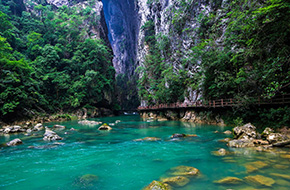 早餐后,游覽大七孔景區(qū)(不含游船,游覽1.5H,掛牌價:60元)—恐怖峽、妖風(fēng)洞、天生橋:大七孔景區(qū)是以原始森林、峽谷、伏流、地下湖為主體的景區(qū),景觀峻險神奇、氣雄峻磅礴,尤其是風(fēng)神洞、恐怖峽、地峨宮景點,洞中有瀑,瀑下有湖,湖上有天窗,陽光投下形如月星斗,極富驚險性、神秘性、奇特性。高百米、寬數(shù)十米跨江而的天生橋被專家們?nèi)笧椤按笞匀簧窳λ茉鞏|方凱旋門”,觀之令人肅然起敬,為大自然神力所折服;(可自費項目:大七孔游船40元/人),游畢返回貴陽,晚上觀看我社贈送大型原生態(tài)歌舞表演——《多彩貴州風(fēng)》