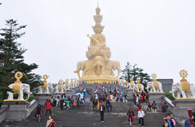 約06:30早餐,約07:00乘景區(qū)觀光車約2.5小時進入【峨眉山】雷洞坪下車,步行至接引殿,乘纜車或步行登至主峰金頂(海拔3077米)在**高的觀景平臺觀金、銀、銅殿、世界**高的金佛四面十方普賢金像(通高48米,總重量660噸)金頂華藏寺、臥云庵,之后返回雷洞坪乘觀光車至萬年寺車場,午餐后步行至萬年寺,可自費10元/人峨眉山開山第一大寺廟—萬年寺、觀無梁磚殿、峨眉鎮(zhèn)山之寶—62噸普賢騎像,經(jīng)白龍洞,來到清音閣,聆聽峨眉山**優(yōu)美的自然景觀“雙橋清音”如詩的水聲,大自然鬼釜神功之作的一線天,中國**大的自然生態(tài)候區(qū),經(jīng)中日詩碑亭、清音平湖等景點后出山門,乘車返回成都