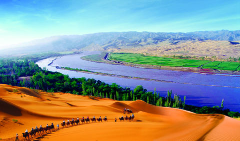 早餐后乘車(chē)赴中衛(wèi),參觀中國(guó)**美五大沙漠之一的國(guó)家AAAAA級(jí)景區(qū)——【沙坡頭】(游覽不少于2小時(shí)),沙坡頭集大漠、黃河、高山、綠洲為一體,既有西北風(fēng)光之雄奇,又兼江南景色之秀美,自然景觀獨(dú)特,人文景觀豐厚,被旅游界專(zhuān)家譽(yù)為世界壟斷性旅游資源??腿丝勺再M(fèi)乘黃河上**老的交通工具羊皮筏子漂流黃河,騎駱駝暢游沙海,了解治沙工程等項(xiàng)目,之后乘車(chē)返回銀川,乘飛機(jī)的客人前往機(jī)場(chǎng),乘飛機(jī)返回北京結(jié)束愉快的旅程!