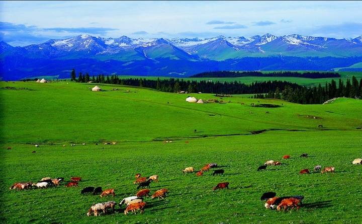 【6】怡然自若游覽被人們譽為“空中草原”的那拉提, 一望無垠的草原上撒落著珍珠般雪白的氈房,草原南側(cè)有終年白雪皚皚的雪峰相伴,綠草、雪峰相映成輝,構(gòu)成了一幅幅動人的畫卷。