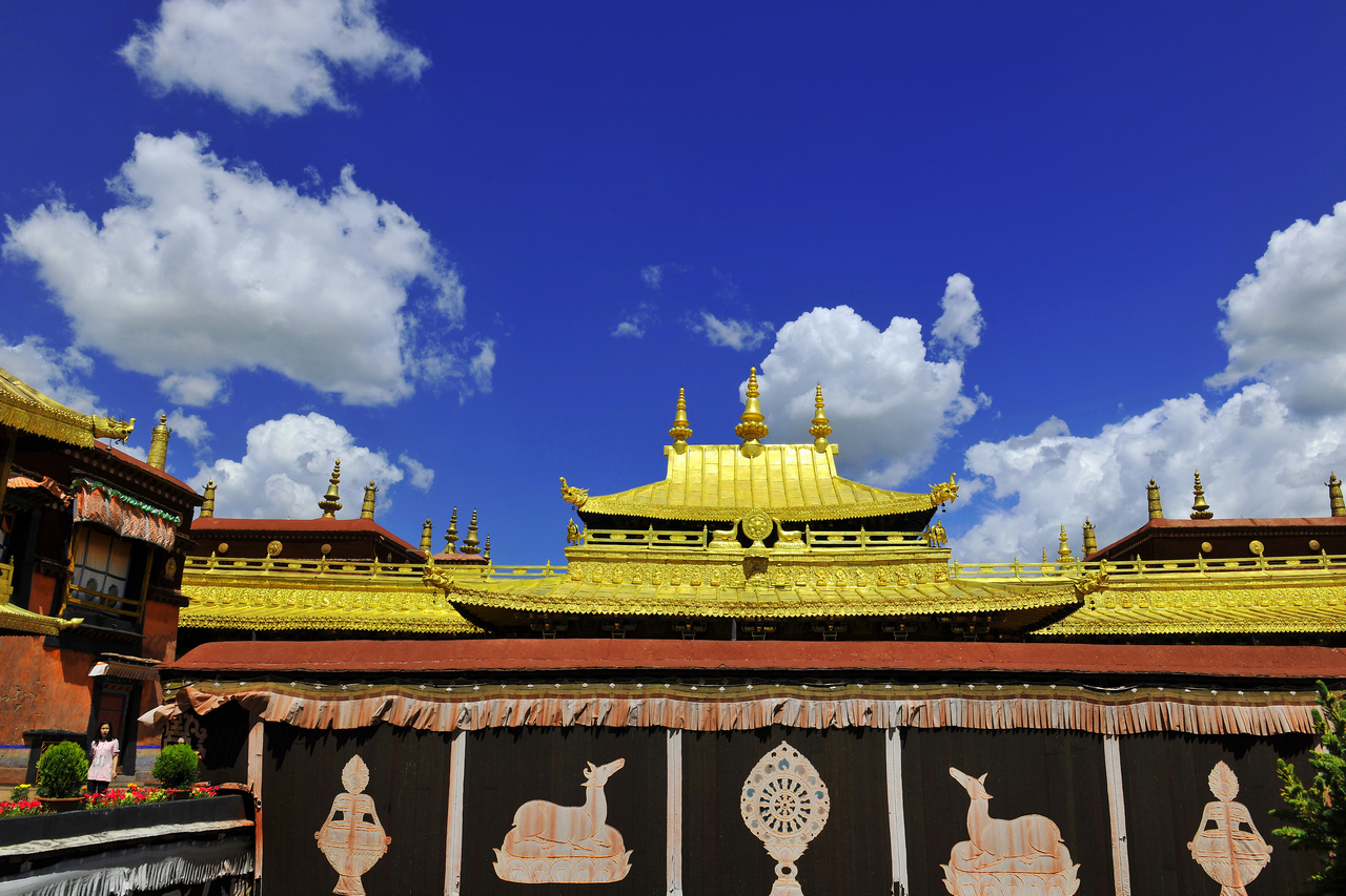 世界上海拔*高的古代宮堡式建筑并有“高原明珠”之稱【布達(dá)拉宮】(游覽約1小時)始建于公元七世紀(jì),自五世達(dá)賴?yán)镆詠硪恢笔俏鞑氐恼魏妥诮讨行?;下午參觀建于吐蕃王朝時期的*早佛堂【大昭寺】(游覽約1小時)供奉有文成公主所帶的佛祖釋迦牟尼十二歲的等身像,是藏族老百姓心中*為神圣靈驗的一尊佛像,在這里游覽不僅能夠看到老百姓朝拜的虔誠,還可隨老百姓一起圍繞寺院轉(zhuǎn)經(jīng)為眾生祈禱。隨后在充滿藏族特色的工藝品【八廓街】自由購物,有興趣的客人可以去拉薩的特色酒吧進(jìn)一步感受藏文化的另一面。