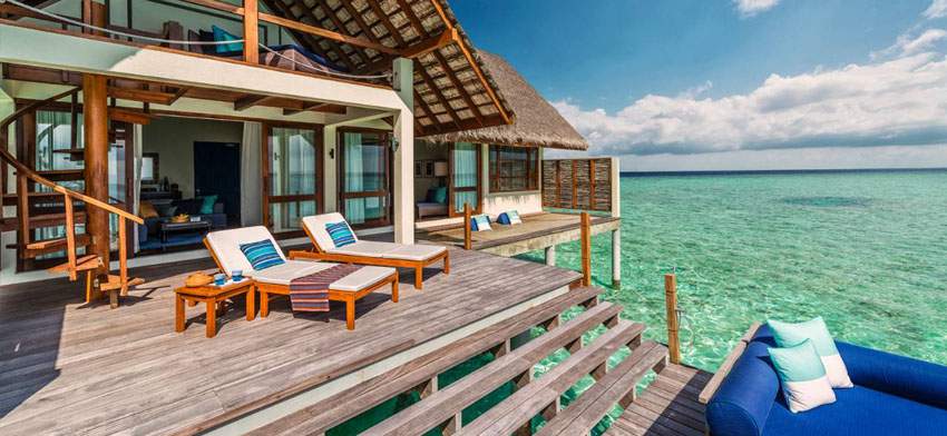 2晚沙灘泳池別墅Beach bungalow with pool+2晚日出水上別墅Sunrise water villa ¥19468 含早餐、水飛