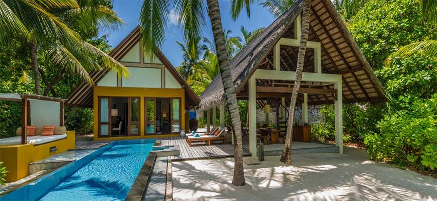 馬爾代夫四季蘭達(dá)吉拉瓦魯島原是一個(gè)椰子農(nóng)場(chǎng),于2006年下半年作為度假村開(kāi)放。這里將傳統(tǒng)馬爾代夫鄉(xiāng)村風(fēng)格和簡(jiǎn)約主義融合至一個(gè)令人驚嘆的地步:淺藍(lán)色的門(mén)、用回收的珊瑚石砌成的墻壁和黃色門(mén)框,里面是光滑的工業(yè)化水泥地板,還有傳統(tǒng)的亞洲黑木家具。幾乎所有級(jí)別的房間都有大型私人游泳池,陸地上的房間則有大花園和露天起居室、吊床和直通海灘的小路。