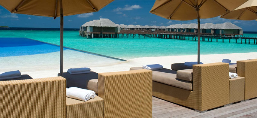 豪華水上棚屋展示了優(yōu)雅和獨(dú)特之傳統(tǒng)味道,時(shí)尚而成熟。樸素而又典雅的設(shè)計(jì),這些棚屋將讓您觀賞到印度洋全景。它擁有兩間臥室、游泳池、桑拿和蒸氣浴室,極可意浴缸、私人餐飲區(qū),寬敞的休閑室還有 40 寸液晶電視和私人大太陽(yáng)床,另有帶來(lái)極致享受的額外配套設(shè)施:Ploh 浴袍、床單和浴巾。