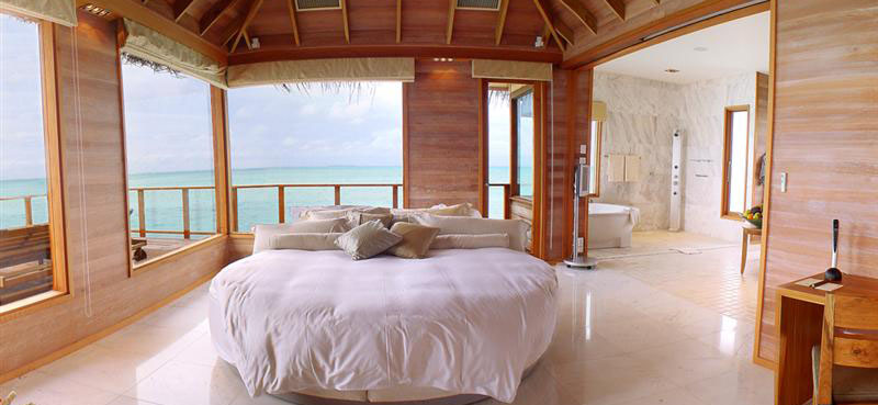 入住要求: 3成人 Rangali島上的上高級水上別墅有74平方米的生活空間。這些水上木屋每個都帶有私人的陽光露臺,CD播放器,茶具,咖啡機,迷你酒吧,一整套的沐浴設(shè)施和海景浴缸,以及寶格麗福利設(shè)施。每套別墅都有一個大櫥。別墅的另一個特色就是在露臺上有一個按摩浴缸,寬頻電視,DVD播放器和環(huán)繞立體聲音響。