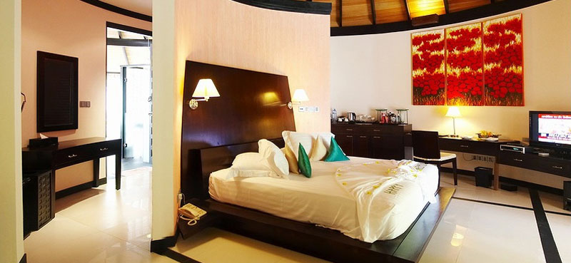 入住要求:3成人 每個木質(zhì)的水上別墅都帶有一個私人的陽臺,CD播放器,茶具和迷你吧臺。沐浴設(shè)備包括全套的淋浴和一個海景浴缸。每套別墅都有一個大櫥。