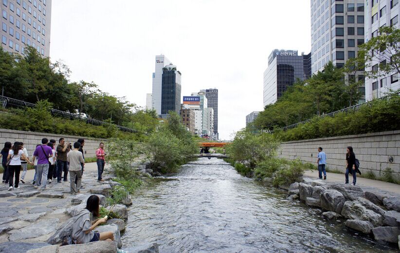 【清溪川】(約30分鐘)清溪川貫穿首爾南北,見證百年滄桑。近年水溝整治后,已被修建為了一條秀麗清新的小河,人們可以在岸邊散步聊天。清溪廣場位于清溪川源頭,標(biāo)志物是個形似海螺或是筍尖的雕塑,伴隨著溪水淙淙,意喻著新生。清溪川四周設(shè)立了很多文化空間,雕塑、繪畫、小橋都是拍照留念的不錯景觀。