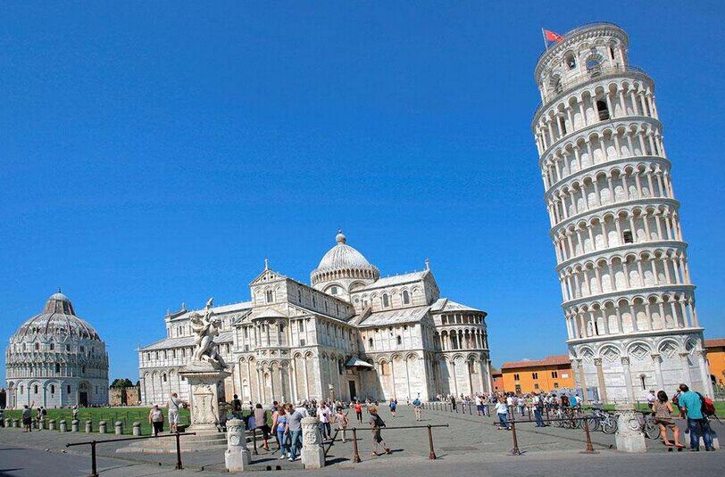 08:00 乘車前往比薩。抵達(dá)后外觀伽利略的故鄉(xiāng)比薩,主要游覽景點(diǎn)為:比薩斜塔(外觀不登塔):世界七大奇景之一,讓您驚訝此傾斜而不墜之奇景,譽(yù)為工程力學(xué)奇跡的比薩斜塔之所以聞名,是因它本身的斜度超過了力學(xué)上離中心點(diǎn)*大角度而仍能屹立不墜。