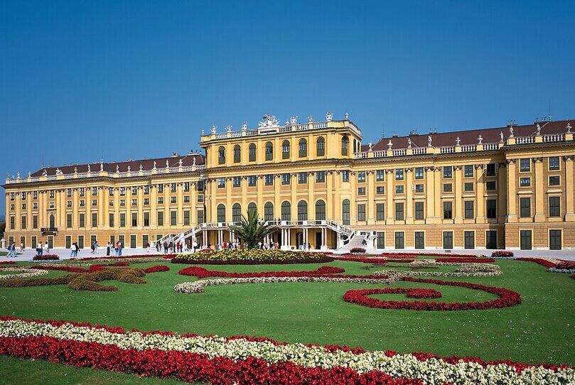 09:00參觀美泉宮{(含耳機(jī)講解),它曾是神圣羅馬帝國(guó)、奧地利帝國(guó)、奧匈帝國(guó)和哈布斯堡王朝家族的皇宮,美泉宮及 其花園在1996年被聯(lián)合國(guó)教科文組織列入《世界文化遺產(chǎn)名錄》 ;