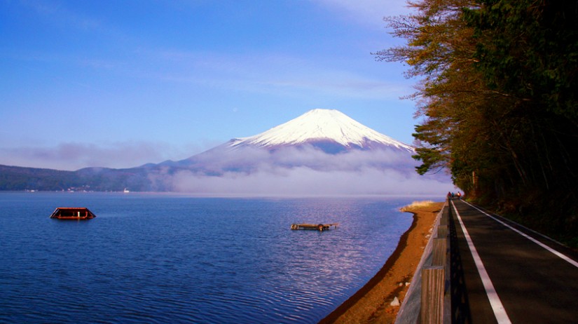 【富士山】被日本人民譽(yù)為“圣岳”,是日本民族的象征。整個(gè)山體呈圓錐狀,一眼望去,恰似一把懸空倒掛的扇子,日本詩人曾用“玉扇倒懸東海天”、“富士白雪映朝陽”等詩句贊美它。