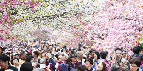 大阪造幣局,造幣局內(nèi)的櫻花約150多種,在這里可以觀賞到別處觀賞不到的“紅刺球”和“養(yǎng)老櫻”等真貴品種。