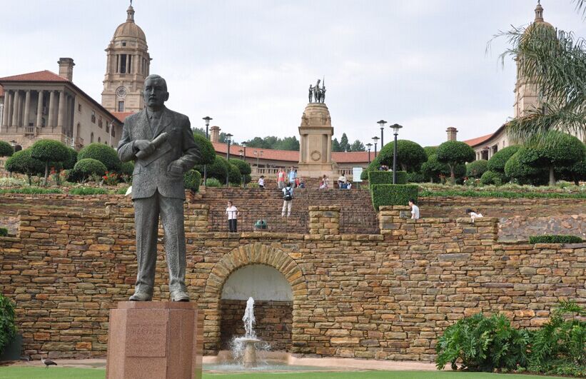 驅(qū)車前往南非行政首都-比勒陀利亞比勒陀利亞市內(nèi)建筑揉合歐洲各國(guó)不同形式而建,在此可參觀古希臘建筑形式的聯(lián)合大廈(途徑參觀)、市政廳(途徑參觀)、教堂中心廣場(chǎng)(途徑參觀)、先民紀(jì)念館等。(游覽時(shí)間約50分鐘)
